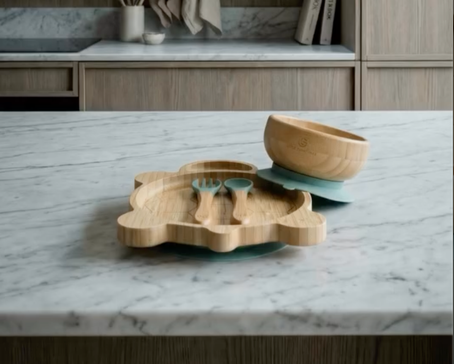 Turtle Bamboo Feeding Set - Plate, Bowl, Spoon & Fork Gift Set